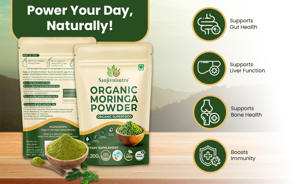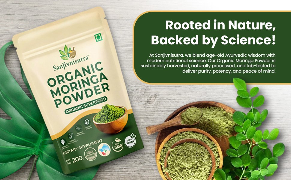At Sanjivnisutra, we blend age-old Ayurvedic wisdom with modern nutritional science. Our Organic Moringa Powder is sustainably harvested, naturally processed, and lab-tested to deliver purity, potency, and peace of mind.